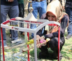 Bupati Mojokerto Ikfina Fatmawati yang datang secara langsung, sekaligus membuka dimulainya lomba burung berkicau di Gantangan Satelit BC, pertigaan Masjid Pacing Kecamatan Bangsal, Minggu (28/5/2023) pagi.