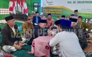 MOJOKERTO | Jejakperistiwa.com – Keluarga besar Pondok Pesantren (Ponpes / PP) Sabilul Muttaqin Jl Raya Trawas – Mojosari desa Kalipuro Kecamatan Pungging Kabupaten Mojokerto pimpinan Dr KH Abdul Rokhim SH MH, hari ini, Minggu 29 Januari 2023, sedang berbahagia dengan acara mantu. Putri Dr KH Abdul Rokhim, Ning Ni’matus Sholilah menikah dengan Gus Muhammad Zidni Sholihin putra dari KH Muhammad Minhajudin Sholeh dari Trenggalek, dengan dihadiri berbagai kalangan tokoh diantaranya KH. M. Mustofa Aqiel Siroj wakil Rois Aam PBNU (NU pusat) Jakarta.